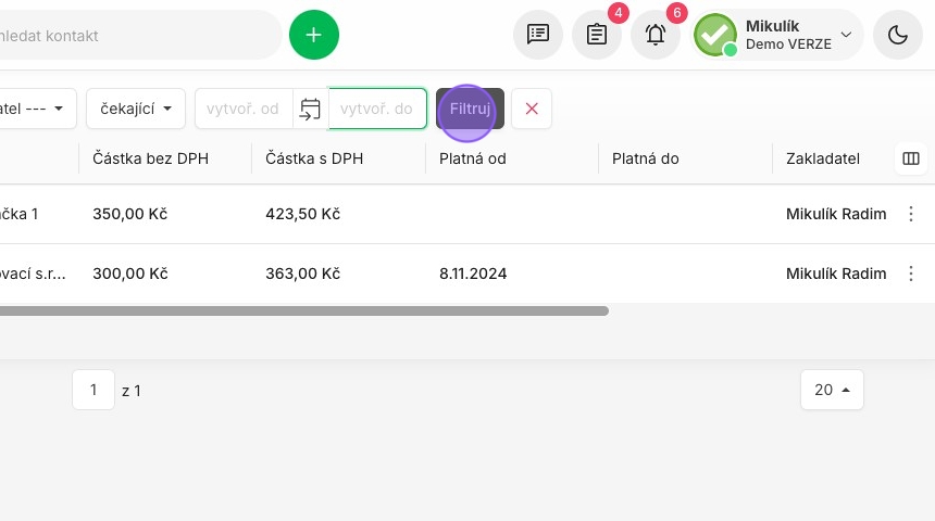 4. Filtrujte podle toho, kdo objednávku vytvořil.